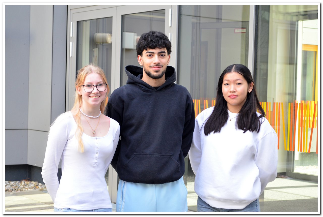 SchülersprecherZuletzt aktualisiert: 05. Februar 2024 | Veröffentlicht: 04. Januar 2016 | Drucken | Zugriffe: 30762 Schülersprecher 2023/24 v. l. n. r.: Fabienne Hornauer, Erdogan Kocak, Anna Nguyen