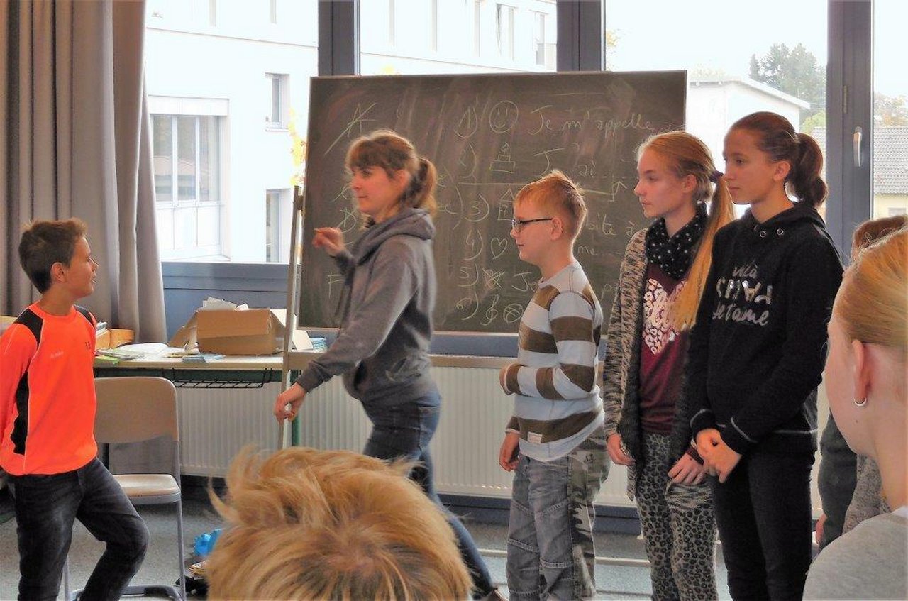 Am Ende der Französischstunde wurden die Schüler abgefragt und sie wussten, dass Amélie Schokolade mag, aus Clermont-Ferrand kommt, einen Bruder und eine Schwester hat und Fahrrad fährt, um fit zu bleiben. Und obwohl alles in der Fremdsprache gesagt worden war, die sie (noch) nicht lernen, konnten sie alle Fragen beantworten. Nach einer Fragerunde zu Frankreich und der französischen Sprache hieß es dann „Au revoir!“