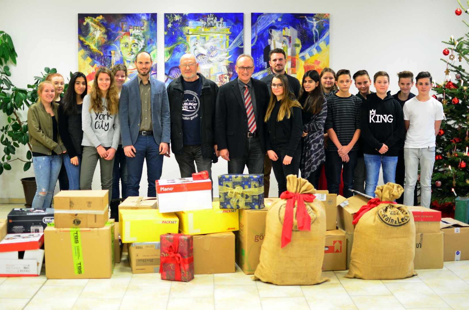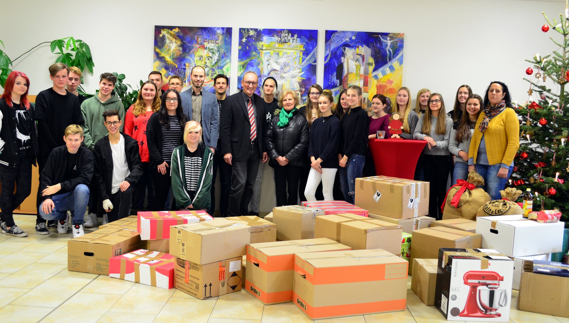 Seit Jahren unterstützen die Schüler der Realschule Rain in der Vorweihnachtszeit die Tafeln in Donauwörth und Neuburg mit Sachspenden. Kurz vor Beginn der Weihnachtsferien wurden die von den Jungen und Mädchen gepackten Pakete jetzt von der SMV und den Verbindungslehrern an die Vertreter der Hilfsorganisationen übergeben.