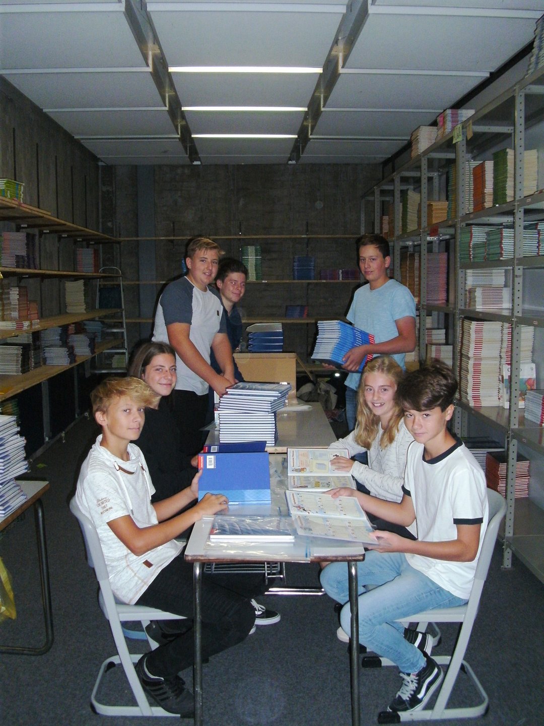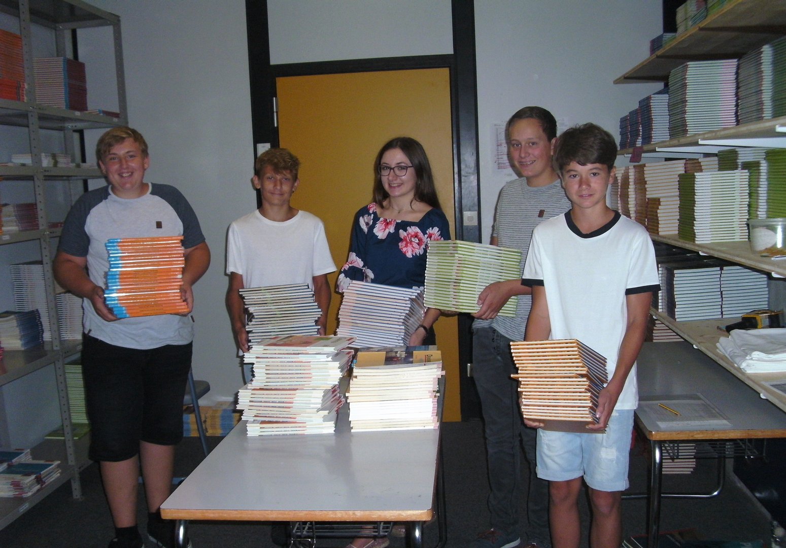 Unser Bücherteam kümmert sich zu Schuljahresbeginn um die Ausgabe der lernmittelfreien Bücher.