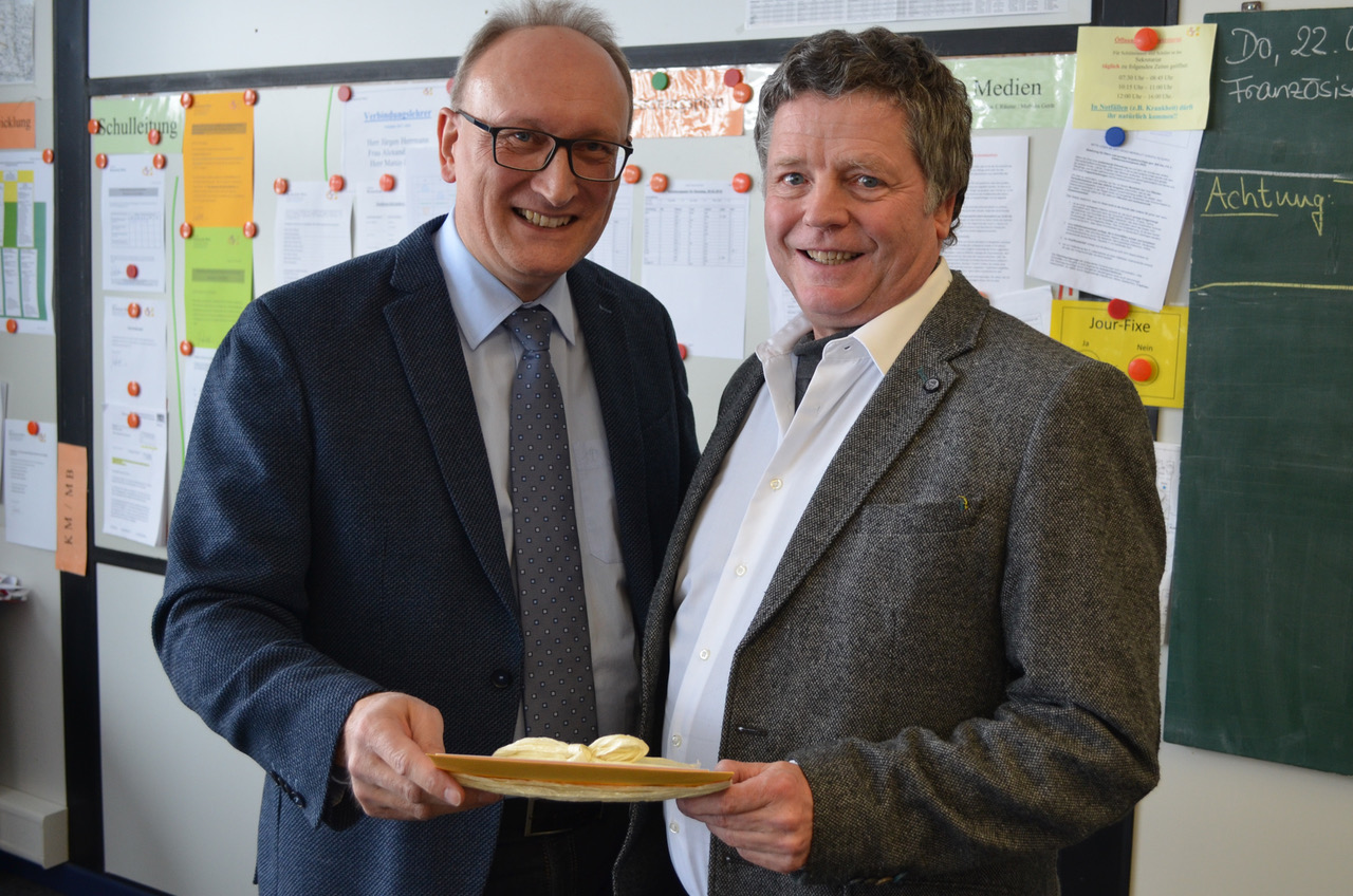 Ihre Wertschätzung brachten anschließend auch die Schüler, die durch die Klassensprecher vertreten wurden, mit symbolischen Geschenken zum Ausdruck. Sie wünschten sich, dass er als Privatmann die Schule bei verschiedenen Anlässen besuche.