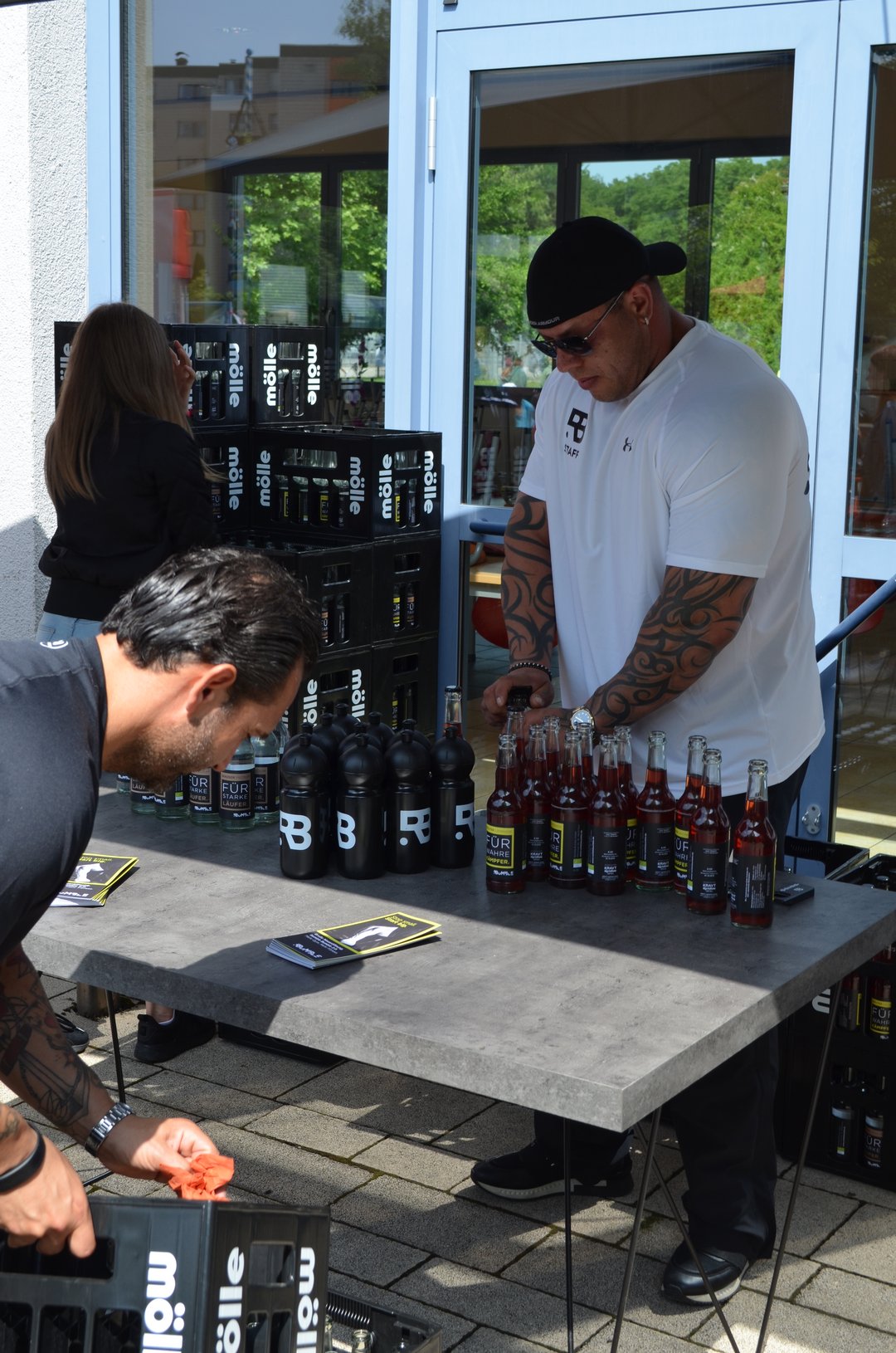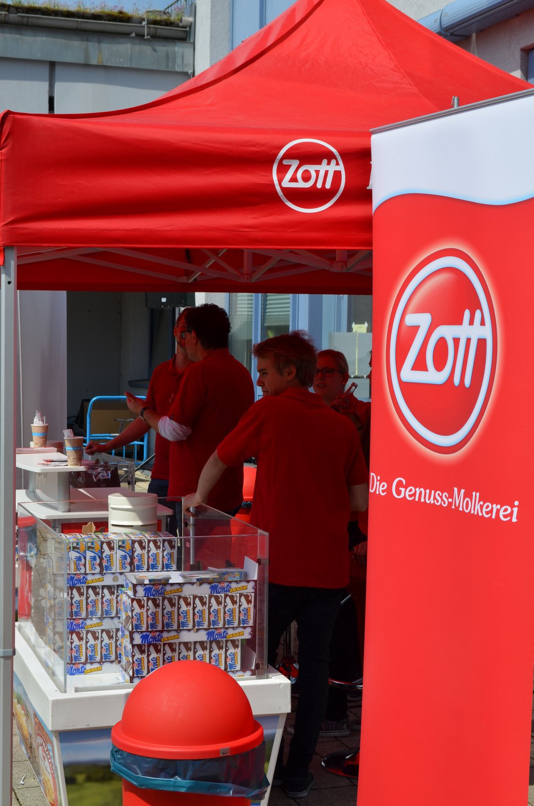 Umrahmt wurde der Lauf durch Fotobooth, zahlreiche sportliche Spielaktionen, wie Torwandschießen, Gladiatorenkampf, Erbsenschlagen, Cup stacking, Dosenwerfen u.v.m. Das schuleigene Technikteam kümmerte sich um die Musik, welche durch die Lautsprecher im Atrium und auf dem Sportplatz ertönte. Neben dem zum Glück hervorragenden Wetter sorgten auch die Gartenliegen gesponsert von H & S Schuster (Gartenmöbelspezialist) sowie die Biergarnituren vom Getränkeservice „Leo bringt´s“ für ein schönes Ambiente. Die Firma Brunnthaler sponserte Mineralwasser, welches die Schüler am Stand der SMV, die ebenso Gegrilltes verkaufte, erhalten konnten. Das Unternehmen Grenzebach rundete dieses Angebot durch seine Obstspende mit dem Elternbeirat, der Kaffee und Kuchen verkaufte ab. In besonderer Weise unterstützt wurde die Veranstaltung durch die Firma Zott, welche die Schülerinnen und Schüler mit hauseigenen Milchprodukten versorgte und durch das Fitnessstudio Rumble Bumble, das Getränke in Flaschen, die speziell für diesen Anlass gestaltet wurden, bereitstellte. In Bildern festgehalten wurde der Tag durch den Fotographen Herrn Nitsche und dem Fotokurs der Realschule.