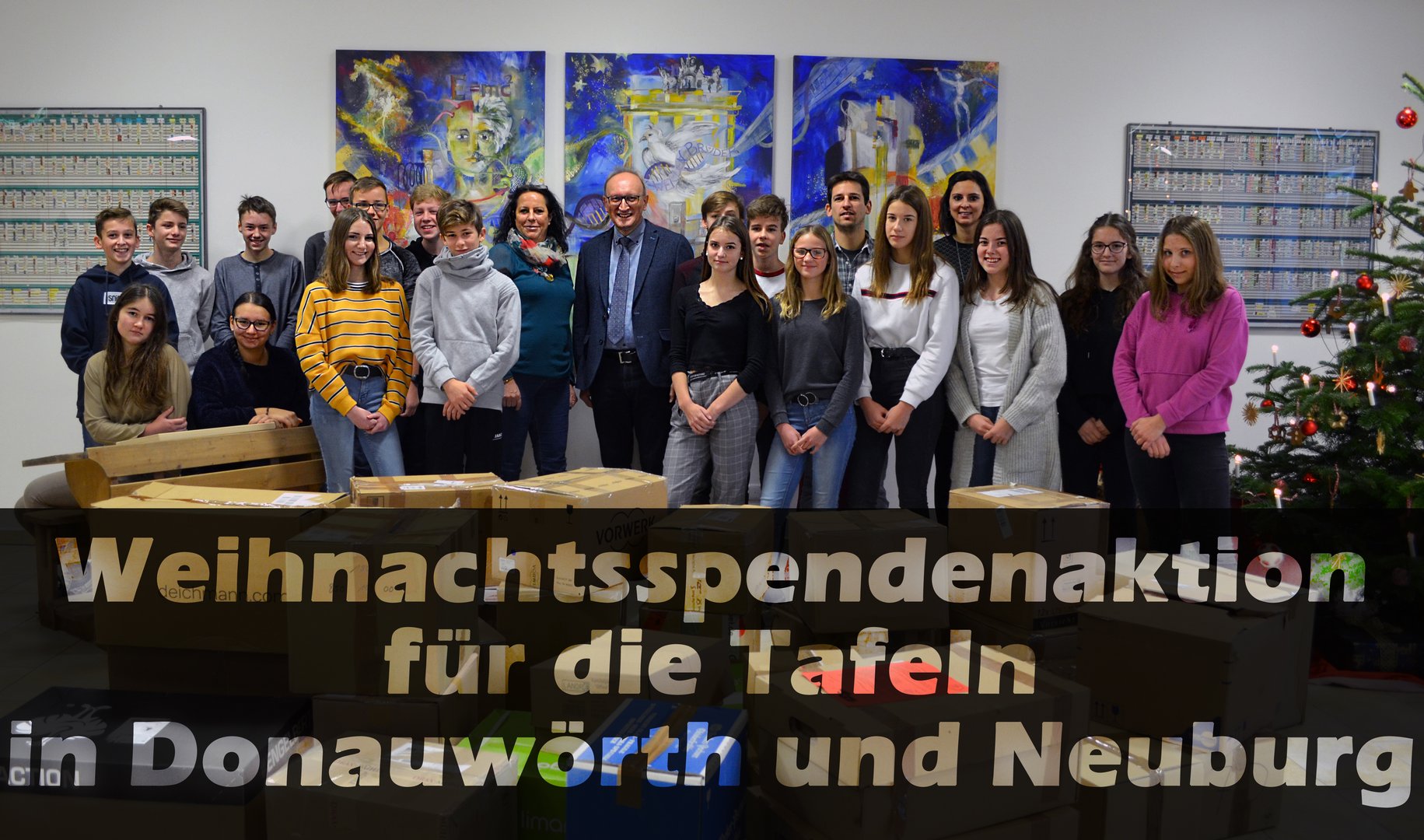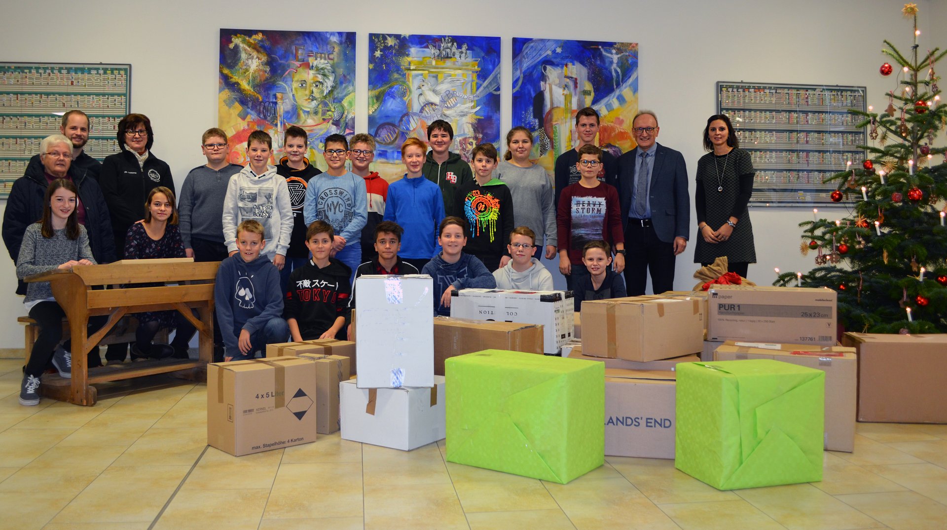 Auf Initiative der SMV (Schülermitverantwortung) der Staatlichen Realschule Rain wurde auch in diesem Jahr wieder in der Adventszeit für einen guten Zweck gesammelt. Bei dieser vorweihnachtlichen Tradition geht es aber nicht um Geld - stattdessen sollten Pakete mit Lebens-mitteln und Artikeln für den täglichen Bedarf gepackt werden. Jede Klasse der Schule steuerte zu dieser Aktion zwei Kartons bei, die zu gleichen Teilen an die Tafeln in Donauwörth und Neuburg gespendet wurden. So konnten nun insgesamt über 60 Pakete übergeben werden.