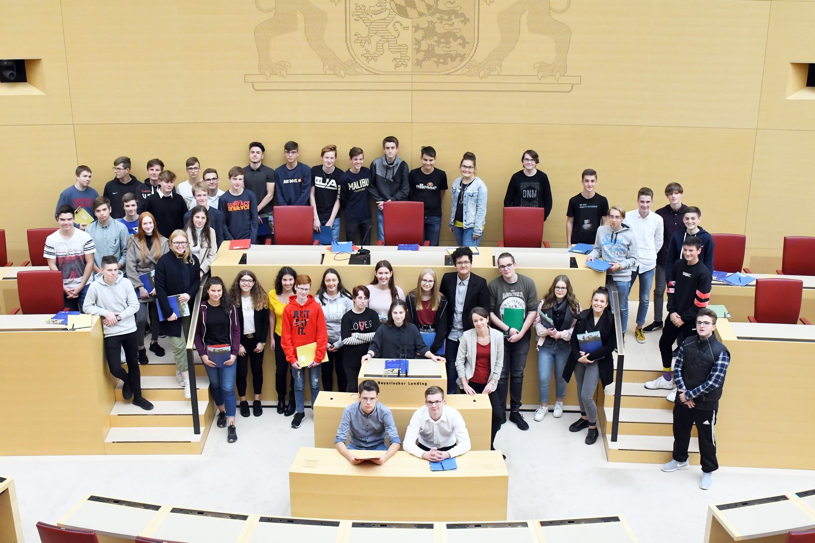 Am Montag, den 21. Oktober 2019, hatten die Schülerinnen und Schüler der Klassen 10 b und 10 c der Realschule Rain die einzigartige Gelegenheit am Planspiel „Der Landtag sind wir“ teilzunehmen, welches jährlich für nur eine Schule pro bayerischem Regierungsbezirk angeboten wird. Dazu fuhren die Zehntklässler im Rahmen des Sozialkundeunterrichts mit ihren Lehrkräften Frau Obel und Herrn Geist nach München ins Maximilianeum, wo die Schülerinnen und Schüler in die Rolle von Landtagsabgeordneten schlüpfen und den Gang eines Gesetzes durch Ausschüsse und Fraktionssitzungen simulieren durften. Das von Mitarbeitern des Centrums für Angewandte Politikforschung (CAP) der LMU München entworfene und betreute Planspiel brachte den Jugendlichen so das Verfahren zur Gesetzgebung besser nahe, als dies im Unterricht möglich wäre.