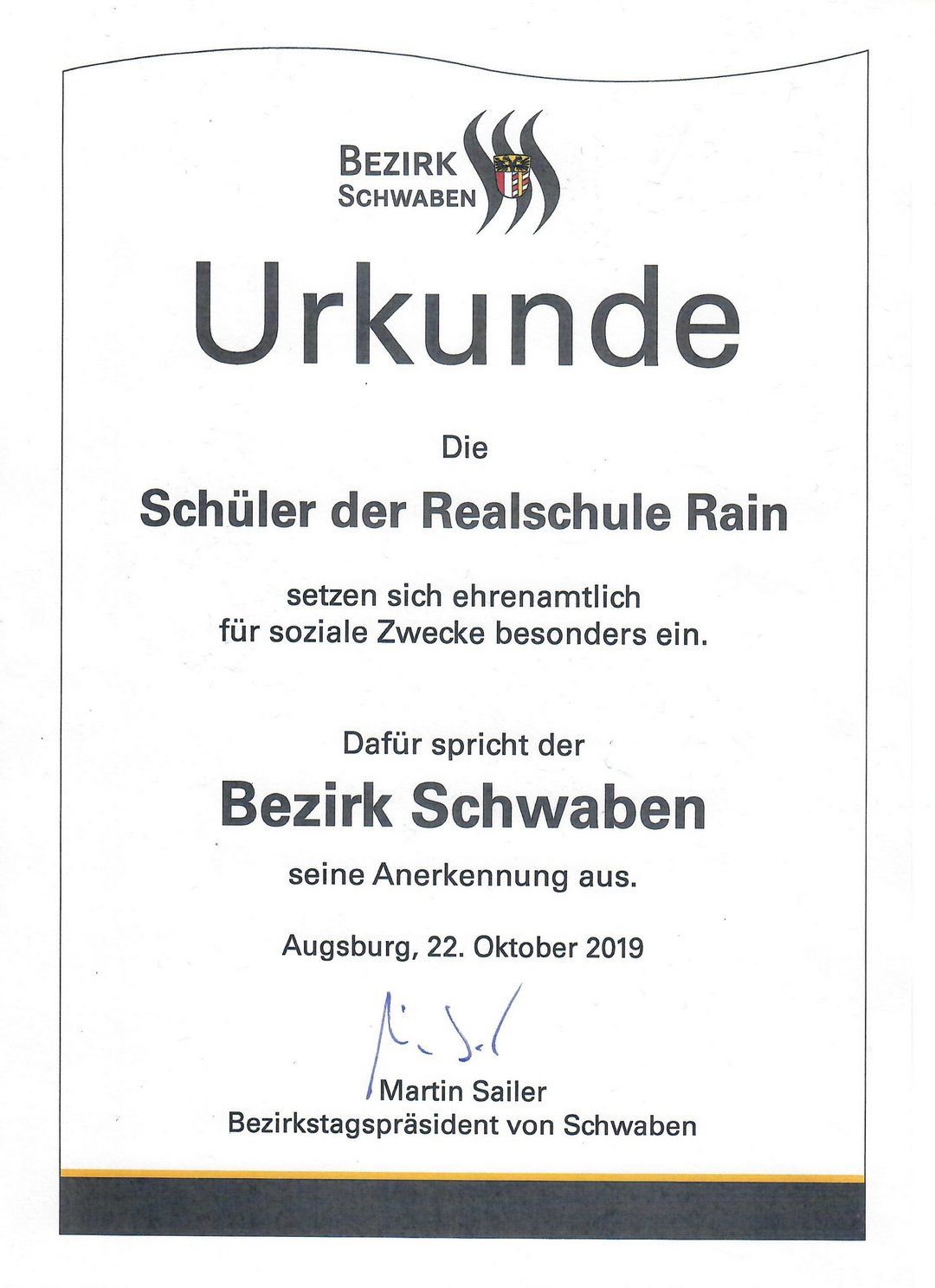 Soziales EngagementZuletzt aktualisiert: 12. September 2020 | Veröffentlicht: 04. November 2019 | Drucken | Zugriffe: 2317 Schüler der Realschule Rain zeichnen sich durch soziales Engagement aus