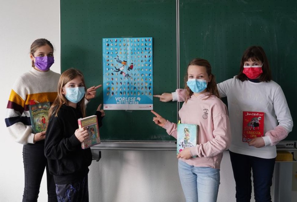 Vom Freundeskreis der Realschule wurden alle vier Vorleserinnen (auf dem Foto von links: Emilia Höß, 6b, Anna Schön, 6d, Emilie Hahn, 6a und Bianca Biber, 6c), die sich im Vorfeld schon als Klassensiegerinnen behauptet hatten, mit einem 20 Euro-Büchergutschein belohnt. Die Schulsiegerin erhielt einen zusätzlichen Gutschein.