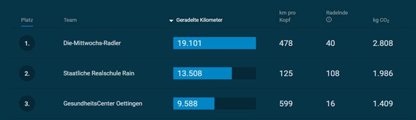 Ihr habt euch wirklich ins Zeug gelegt und unserer Schule bei der ersten Teilnahme am Stadtradeln im Landkreis Donau–Ries den 2. Platz und innerhalb der Stadt Rain den 1. Platz beschert. Wir werden auf alle Fälle 2022 wieder teilnehmen und hoffen, unser Schulpotential noch mehr ausschöpfen zu können.