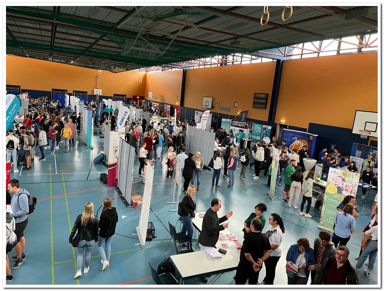 Am Donnerstag, den 05.10.2023 warben mehr als 50 Firmen und Fachschulen mit ihren überzeugenden Präsentationsständen für mehr als 90 verschiedene Ausbildungsberufe in der Dreifachturnhalle der Stadt Rain.