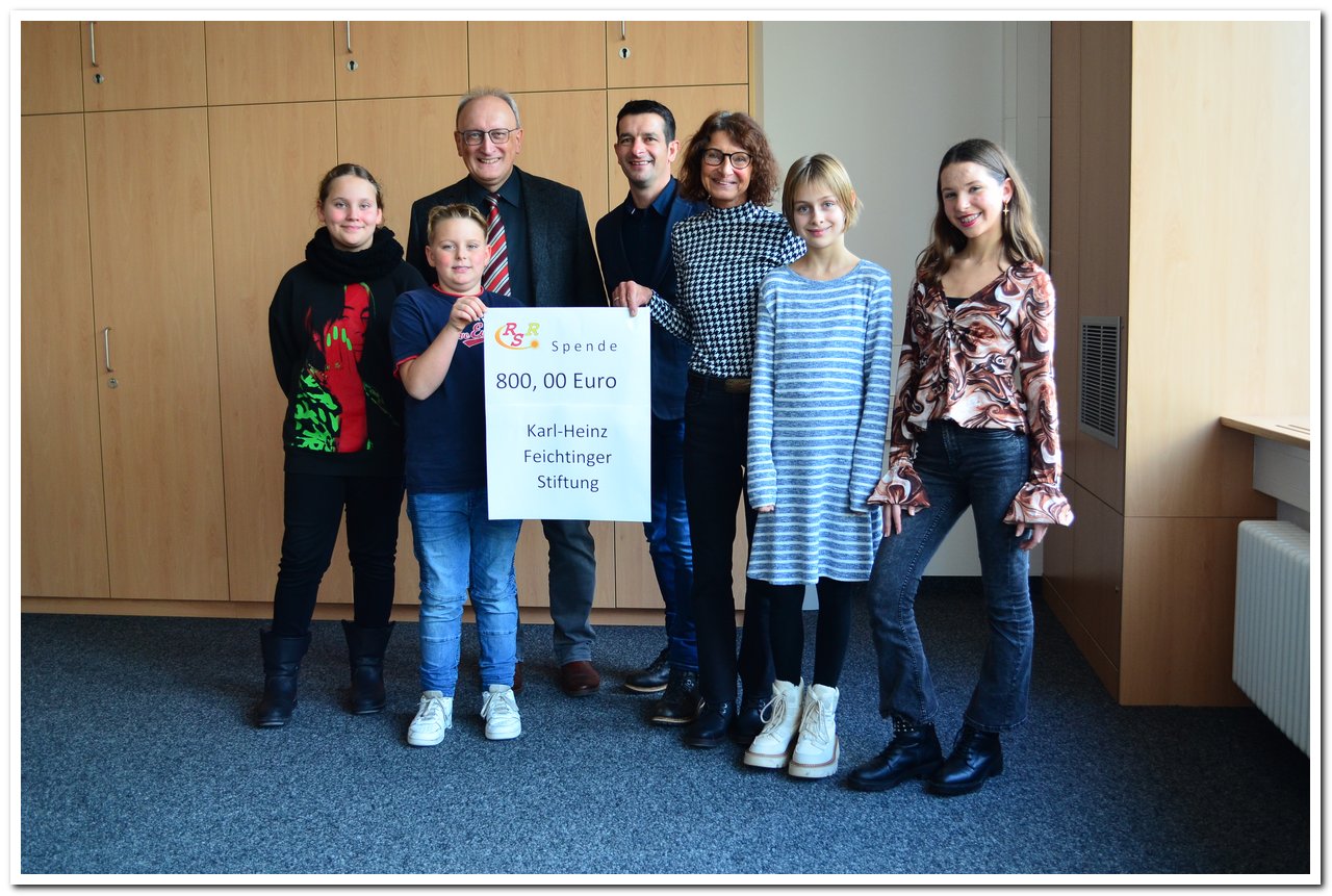 Schülerinnen und Schüler der Bläserklasse und Schulband über die großzügige Spende für die Karl-Heinz Feichtinger Stifung.
