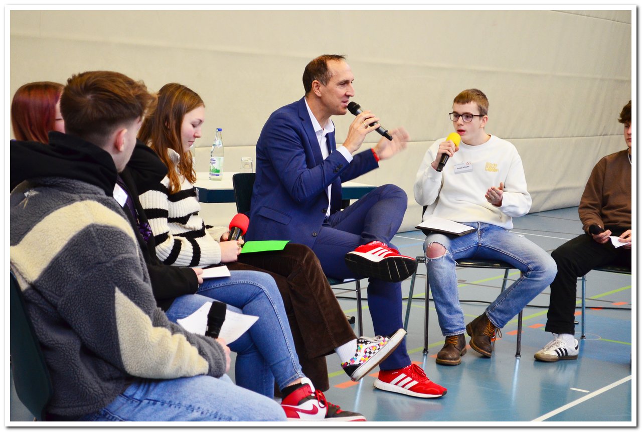 Zum Schlagabtausch kam es vor allem bei der Frage im Umgang mit Russland im Ukrainekrieg und der Rolle der USA in der internationalen Staatengemeinschaft. Kritisch fragten die SchülerInnen auch bezüglich der Gaslieferungen aus Katar nach.